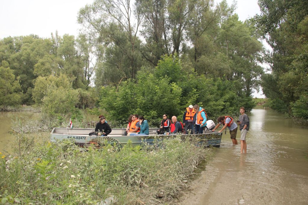 Végül, de nem utolsó sorban a harmadik napon nemcsak beszélgettünk és előadásokat hallgattunk a vizes élőhelyekről, hanem el is látogattunk a Nagyléli-szigetre (Velky lel), ahol a BROZ Természetvédelmi Egyesület bemutatta a terület ökoszisztémáinak megőrzésének módszereit és az eddigi helyreállítási munkáit. A Duna magas vízállása miatt azonban a félsziget teljesen víz alatt volt, így szárazföldi terepi bejárásra nem, de motorcsónakos bejárásra viszont sor került. Mondhatjuk úgy is, hogy a vizes élőhely így vált árvizes élőhellyé…
