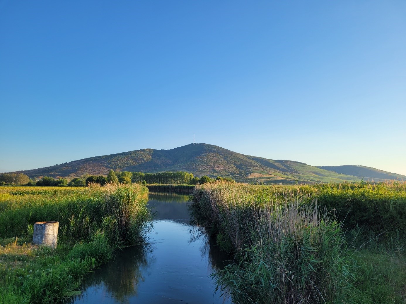 Taktaközi öntöző-főcsatorna háttérben a tokaji Kopasz-heggyel