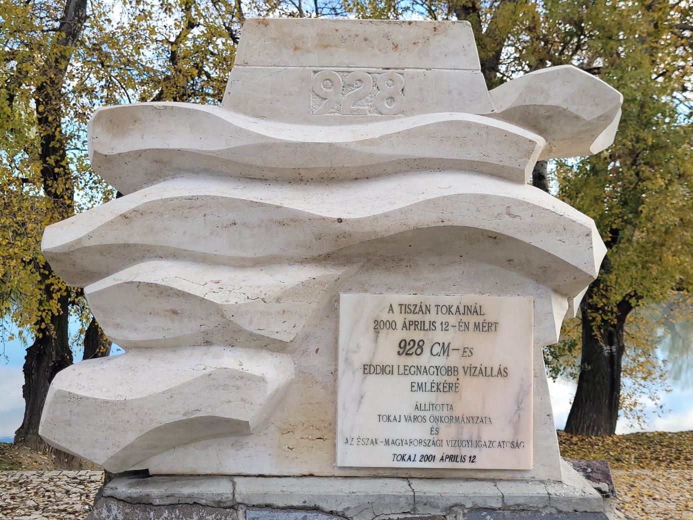 Árvízi emlékmű a szakaszmérnökség épülete előtt